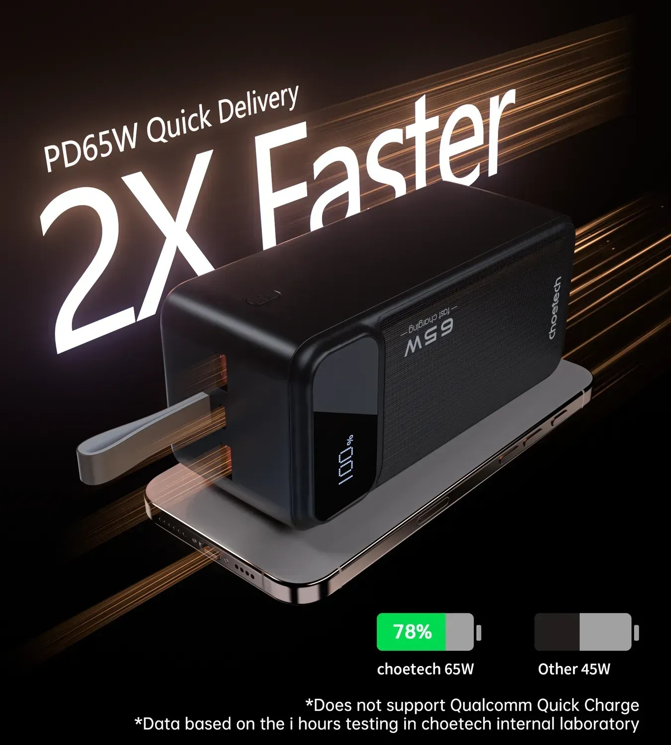 - Швидка зарядка PD 65 Вт: ідеально для ноутбуків, планшетів, камер