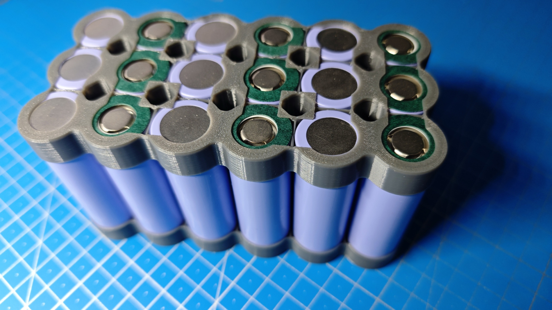 Надійний і зручний холдер для складання акумуляторного блоку формату 6s3p з елементів 21700. Виготовлений методом 3D-друку з міцного термостійкого пластику PETG, він забезпечує точну фіксацію елементів та додатковий захист зварних контактів. Ідеально підходить для DIY-проєктів, збирання батарей для FPV-дронів.