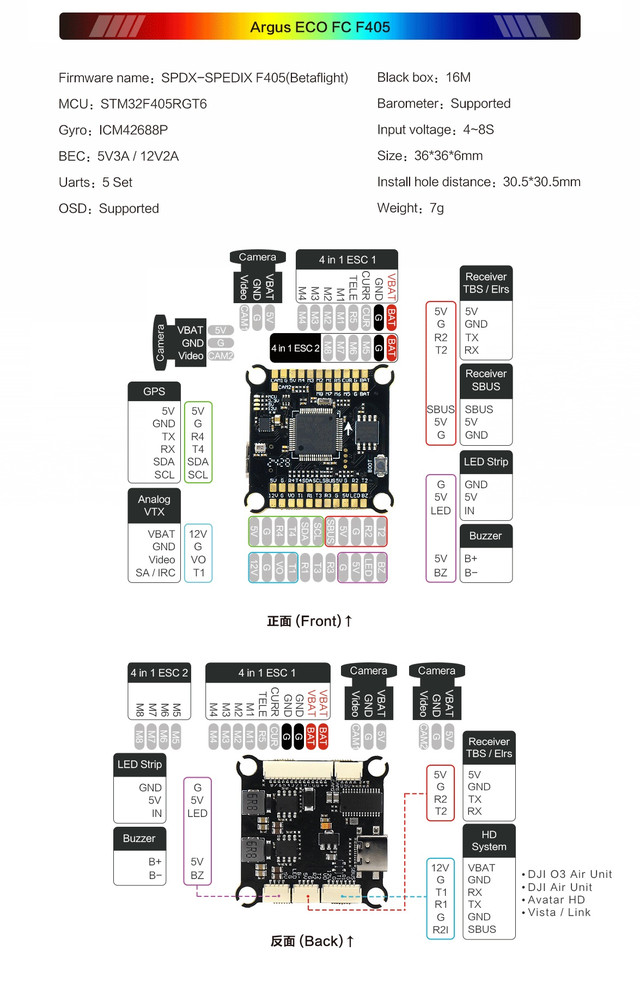 - Підтримка GPS / DJI Air Unit / LED / Buzzer / Analog / I2C