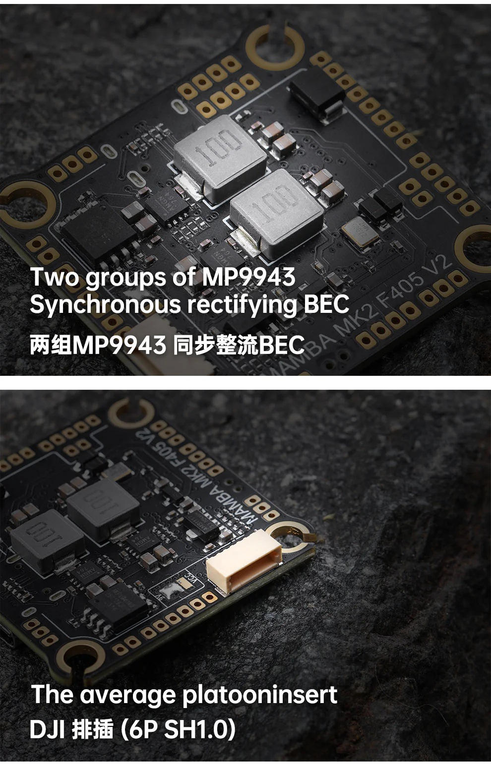 Mamba F405 MK2 V2 Stack — це сучасний політний стек від Diatone, створений для FPV-дронів, який поєднує в собі потужний контролер польоту F405 MK2 V2, високоточний гіроскоп ICM42688P та продуктивний регулятор швидкості F55 BLS ESC. Така комбінація забезпечує стабільність, швидку реакцію та надійність навіть у складних умовах польоту. Ідеальний вибір для пілотів, які прагнуть максимальної продуктивності та точності керування.